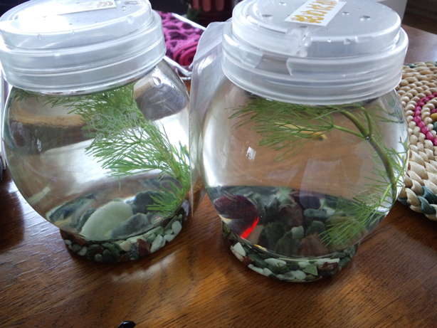 プラ製のボトルに3匹ずつ。どうもこのまま、特に蓋に穴とか空けずとも飼育可能であるらしい。
