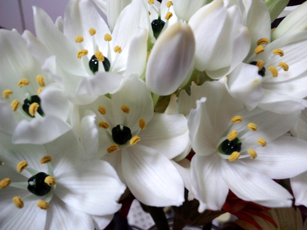 中心のところの緑の塊が何なのかよく解らない…が、白の発色が良くてしかも一本の茎からもさもさ開くものだから単品でも映える。
