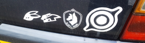 車のリアに貼っていたステッカーが結構ぼろくなってきたので張り替えるか、と思いつつその前にまず増やしてみた。