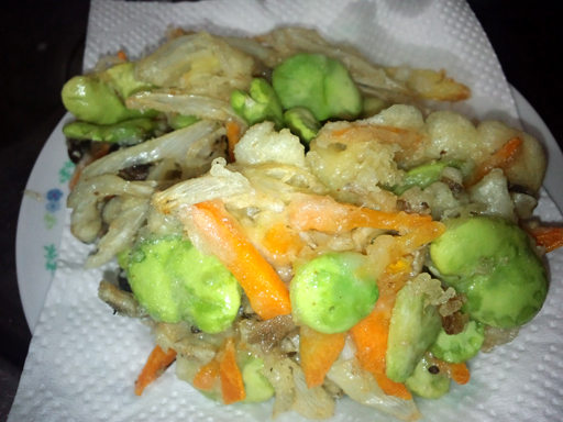 そらまめとしめじのかき揚げヽ(*'x')ノ
