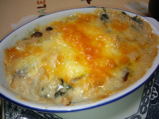 ホワイトソースの替わりに長芋+豆乳+コンソメ。
