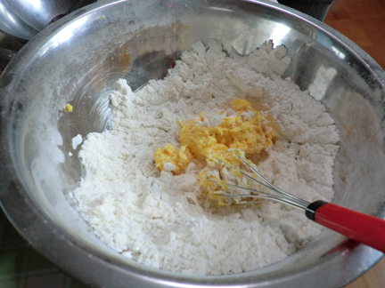 こんな感じ。若干粉突っ込みすぎて別な菓子のようになりましたが…まぁ多い分は落とせばいいので…。