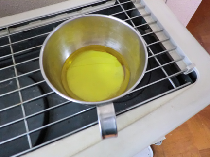 強力粉・薄力粉も計ったら混ぜてふるいにかける。あと仕上げ用のバターは適当な頃合いになったら金物、或いは鍋なんかに放り込んでストーブ上に置くと楽です。
