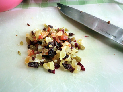 あとは残りのドライフルーツも、大きい物は刻みます。