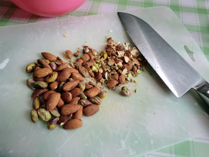 今回は無塩アーモンドとピスタチオのみ。胡桃なんかを入れても良い感じになります。