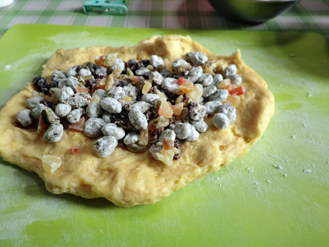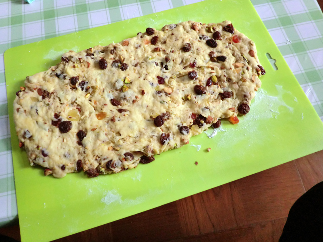 レーズンとドライフルーツ(粉まみれ)を包む感じで混ぜ